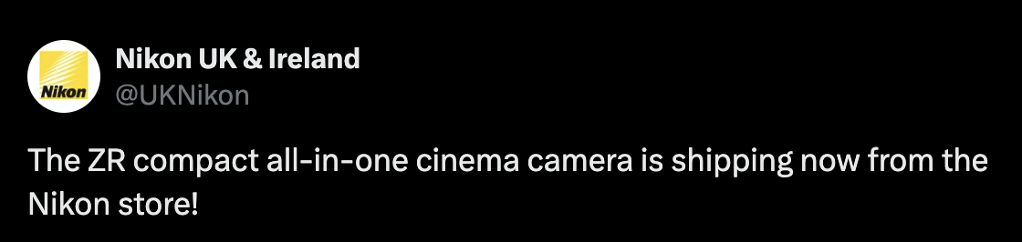 The new Nikon ZR camera is now shipping in some countries and is currently in stock in Canada. In the US, the ZR is expected to start shipping on October 20th. Check availability at: