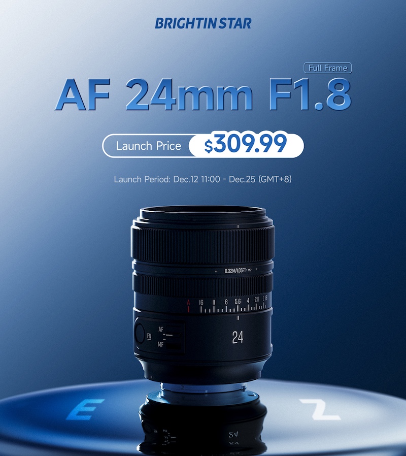 The previously reported Brightin Star 24mm f/1.8 full-frame autofocus lens for Nikon Z-mount is now officially announced and is currently in stock at the official online store and on Amazon (check out the Brightin Star Amazon Store as well). You can get one for the intro price of $309.99 (6% off from the original $329.99 price – that offer will end in two weeks).