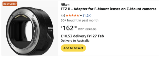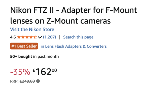 The Nikon FTZ II adapter is currently 35% off at Amazon UK: