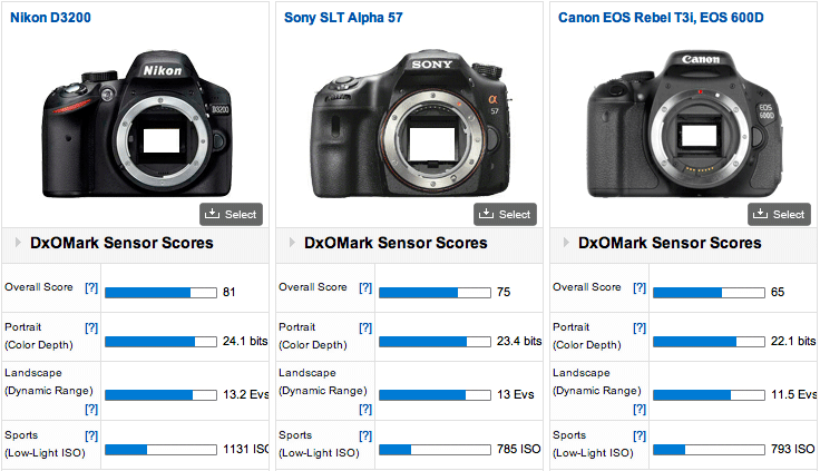 And the D3200 compared to the Sony a57 and Canon T3i: