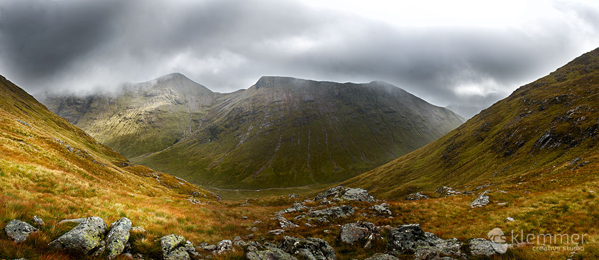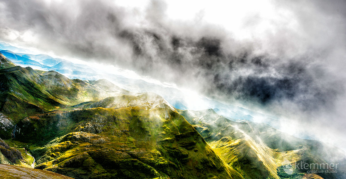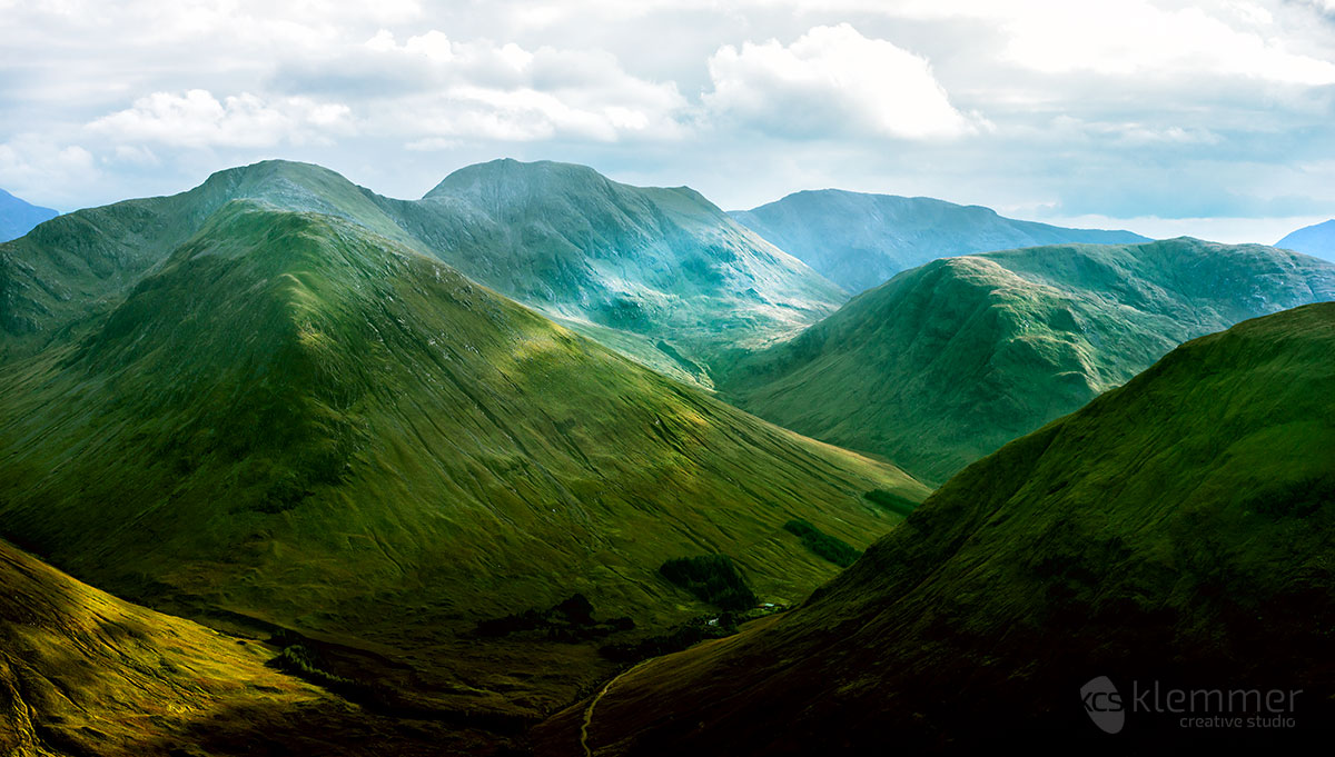 Ben Nevis is 1345 metres or 4413 feet high. As I didn’t want to miss out an opportunity because of my own weight restrictions, I decided to not take anything out of my backpack or I might regret it. Take out the 70-200 and you’re gonna need it, it’s like Murphys law. I arrived at Glen Nevis a day before to hike through the Glen and get an impression of the sheer size of the mountain. While meandering through the Glen, I took some shots: