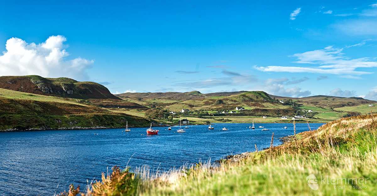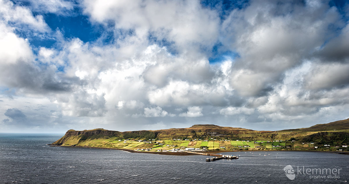 The weather didn’t let me down and put on its most dramatic face while I was visiting Uig. I spent two hours here and enjoyed the scenery before I made my way back on the other side of the isle where I stopped near Struan to take another picture of a lovely bay: