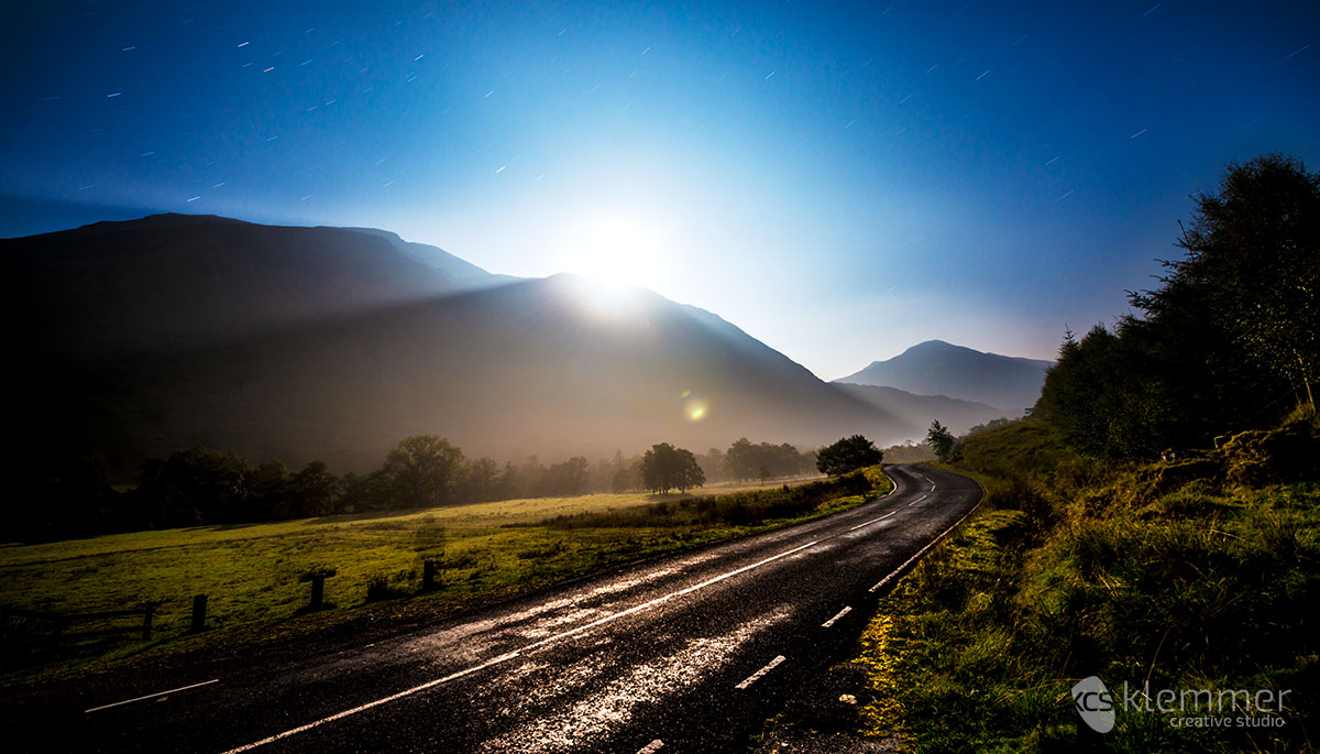 But before that, there was the night which I used for some outdoor photography as well. There were almost no clouds in the sky so I took out my D800, the remote trigger and put everything on a tripod. While doing that I noticed that fog was coming up and I feared that soon my lens will be moist but everything was okay in the end. This is Ben Nevis / Glen Nevis and night: