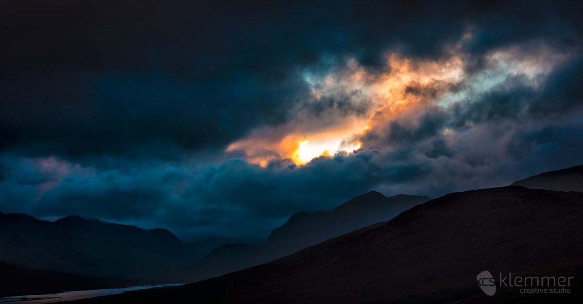 As time marched on, I then decided to head back and left the Isle of Skye again but not without making another stop at the Eilean Donan Castle – the famous Highlander Castle. Also I captured the last few rays of sun behind some dramatic weather when I passed Loch Garry again: