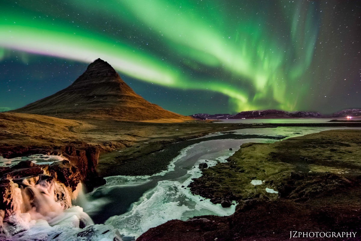 For those of you that have never seen the Auroras, I can tell you from experience that they are nearly everything pictures show them to be. When I say they left me breathless, I literally mean they left me breathless. At one moment, they got so bright that I was able to record the experience with my cellphone’s camera. During that moment, I had the settings on my camera as listed above, but the image overexposed and actually washed out everything! They were green and purple to the eye and jolting and dancing just like the videos. I took this photo at the famous location of Kirkjufellsfoss. Read these next few sentences carefully to understand how I took this photo.