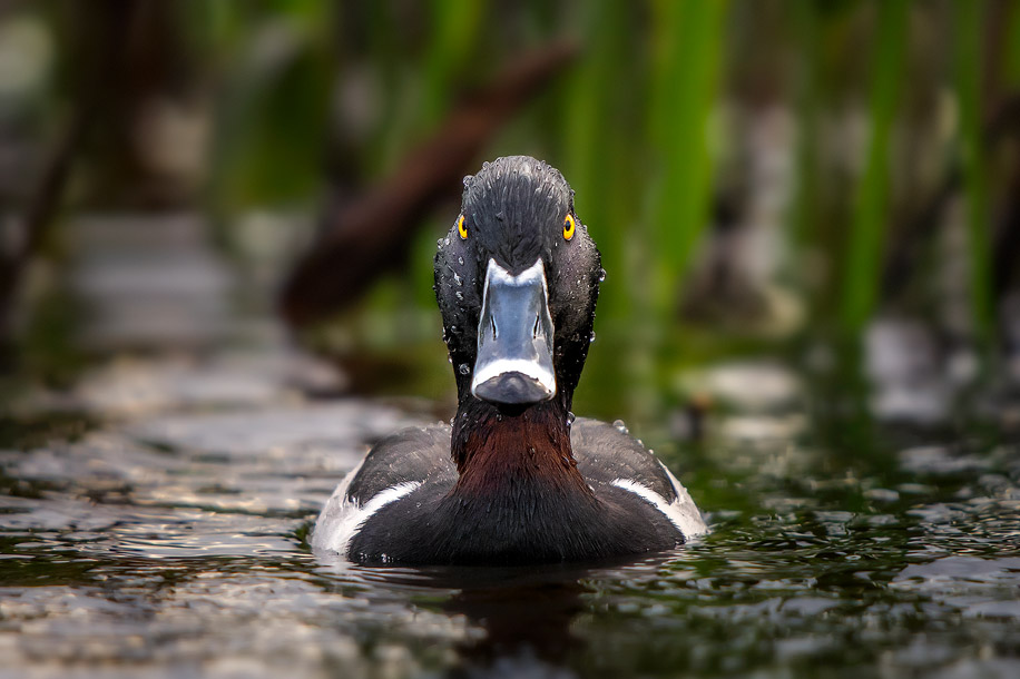 By understanding how the AF guides in my viewfinder really work, I was able to position the single point I was using in a way that kept the eye of this ring billed duck tack sharp.