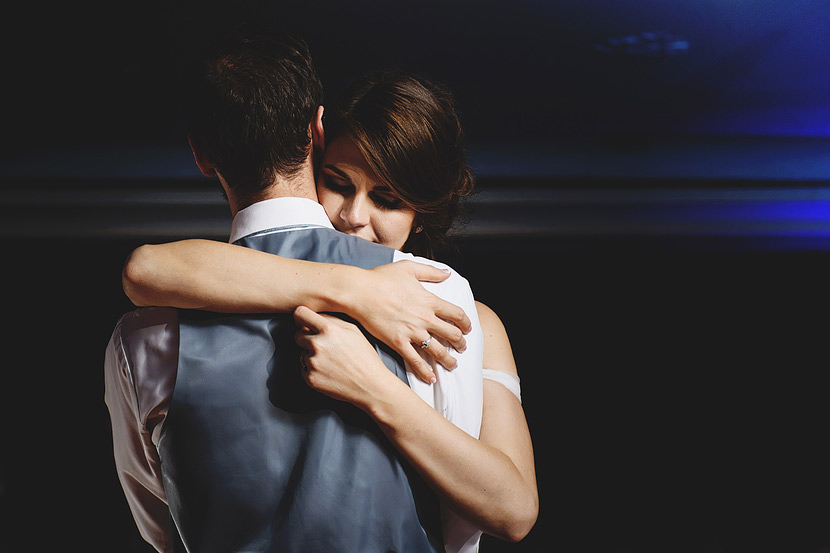 A loving squeeze; the bride and groom’s first dance together. D5, 24-70mm ƒ2.8G, off camera flash.