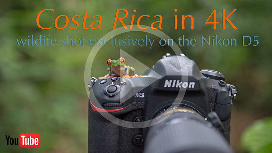 I spent the last month in Costa Rica field testing the Nikon D5 in comparison to the D4S, which I have shot with extensively since its release. Below I have listed are what I consider to be the top 10 new features of the D5. The most impressive update is the addition of 4K UHD video. To demonstrate this below you will also find a real world highlight reel of 4K video I shot of wildlife native to the jungles of Costa Rica.