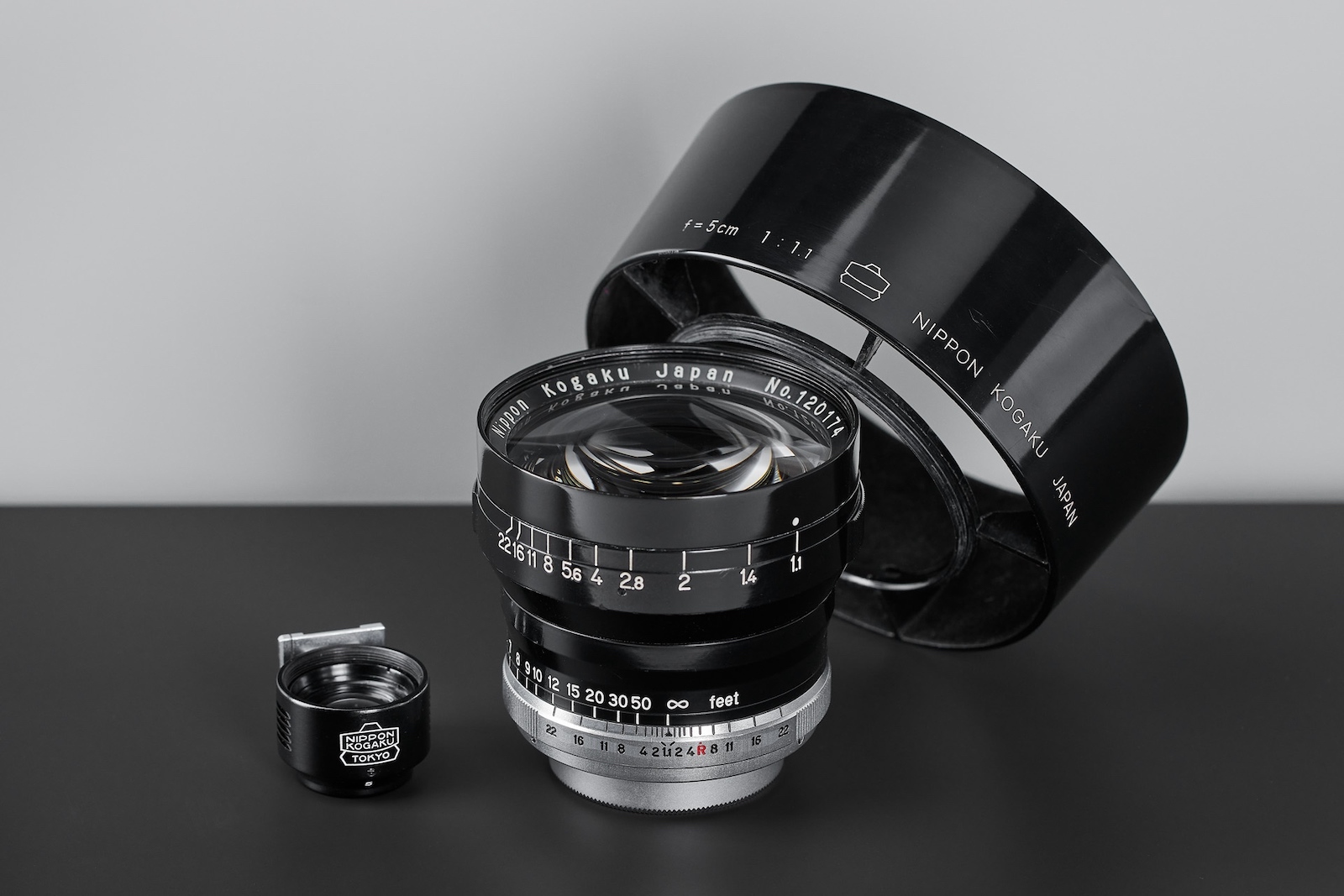 “Nikon was the first of the major camera manufacturers to offer an ultra-fast 50mm lens. The famous Nikkor-N 1.1/50mm was an impressive optical achievement, with the lens containing 9 optical elements in a relatively compact housing. A rare version of this special lens, in M39 mount and with a black front rim will be available in our June auction.”