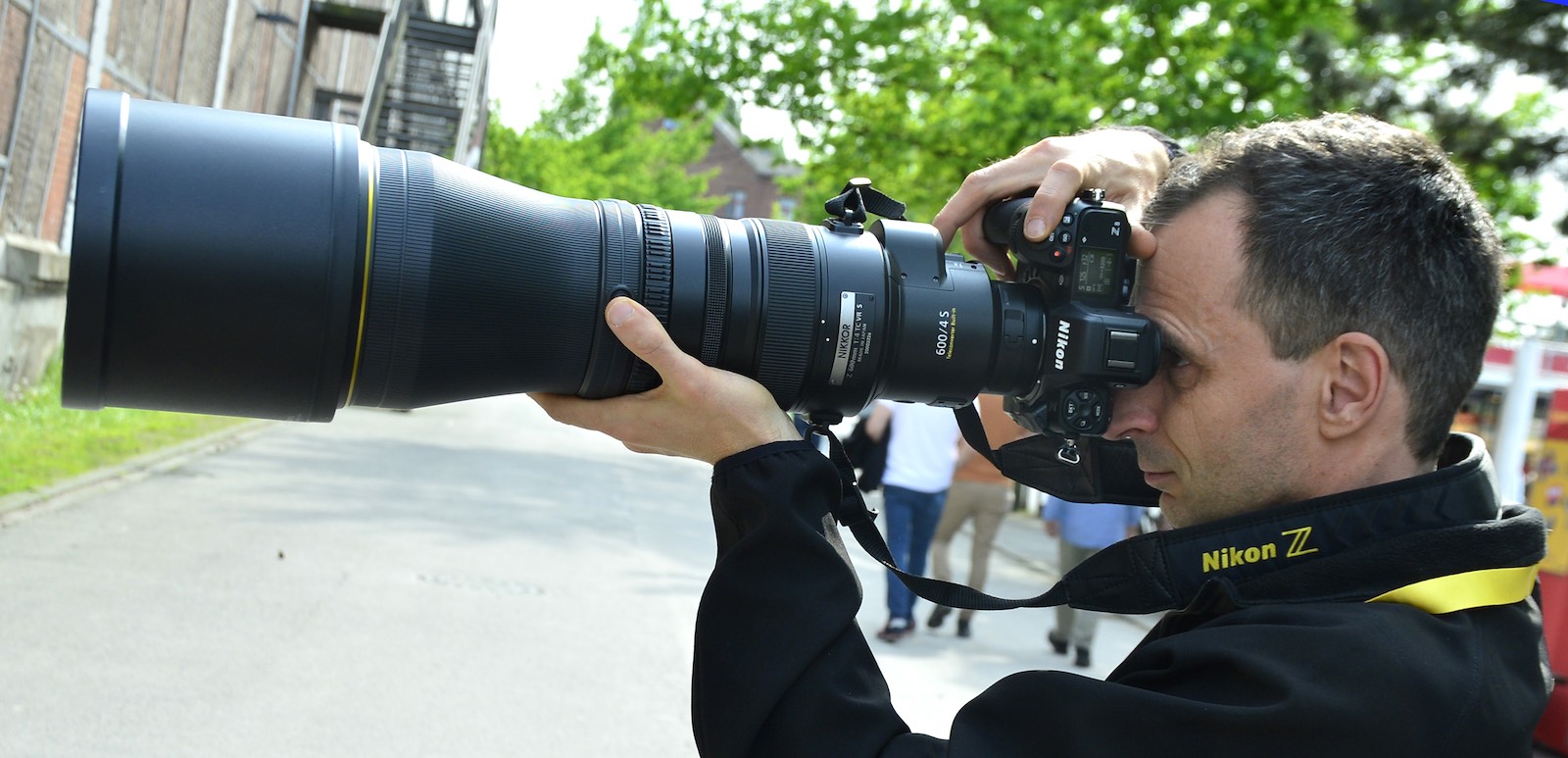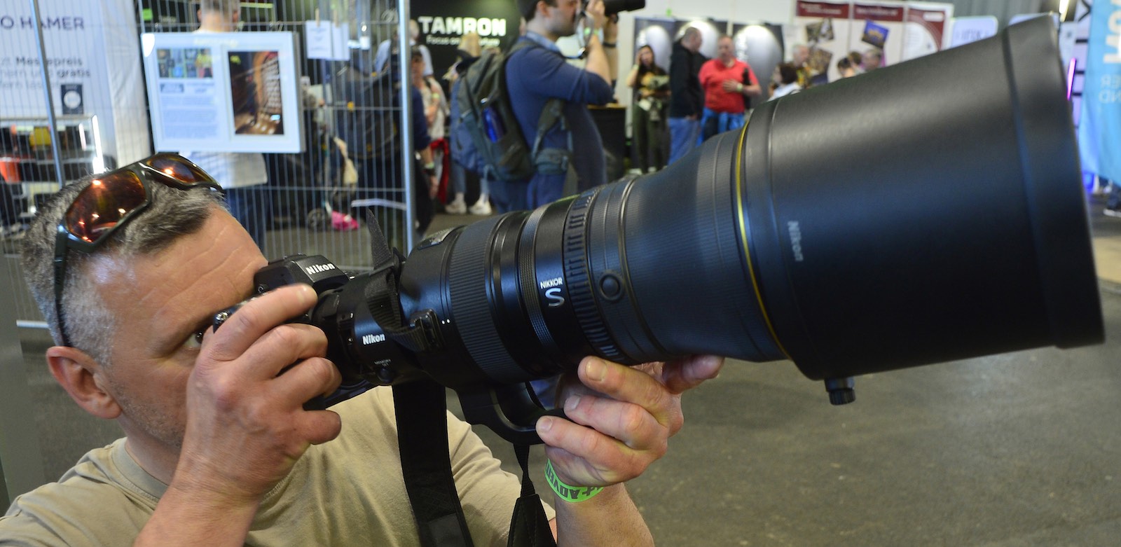 Hendrik Mallmann (Nikon Germany) at the PHOTO & ADVENTURE (Duisburg) with the new Nikon Z8 and Z-Nikkor 4/600 S.Photo: Braczko Nikon Df and AFS Nikkor 18-140 mm G ED.