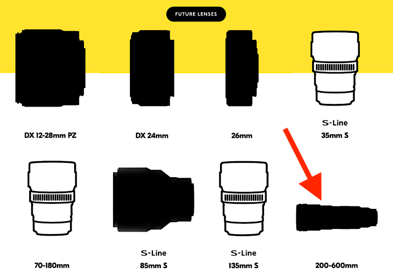 - The focal length could be different than 200mm on the wide end (maybe 180mm?) – not sure why the lens was listed as 200-600mm on the roadmap.