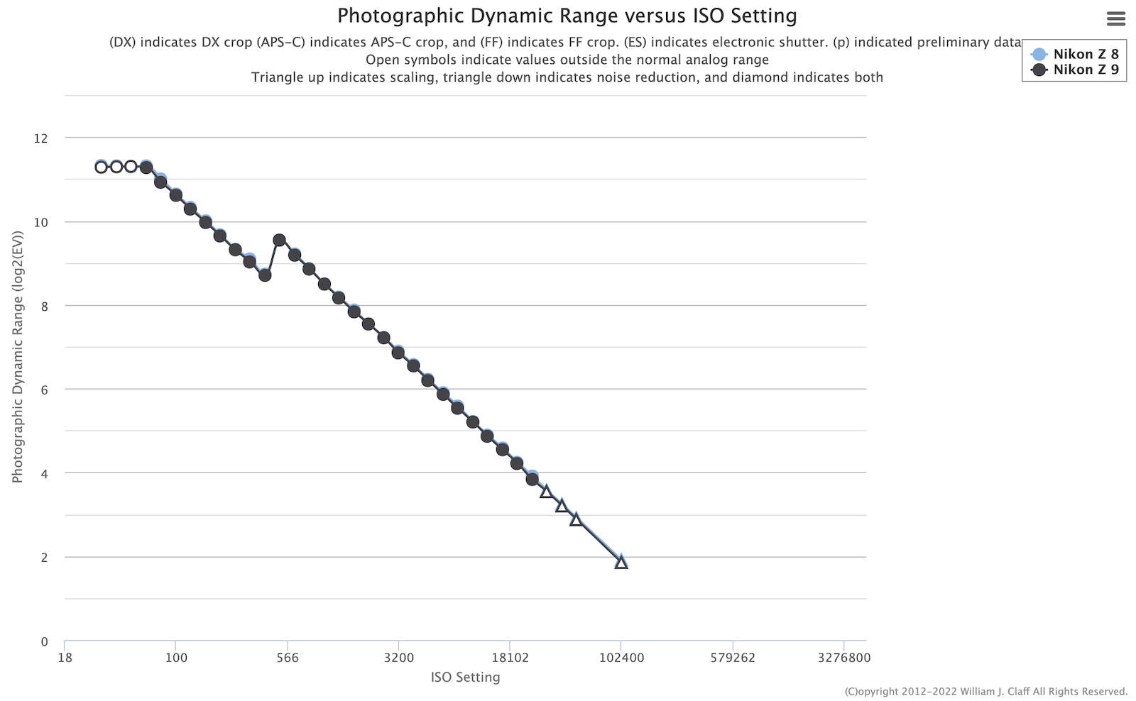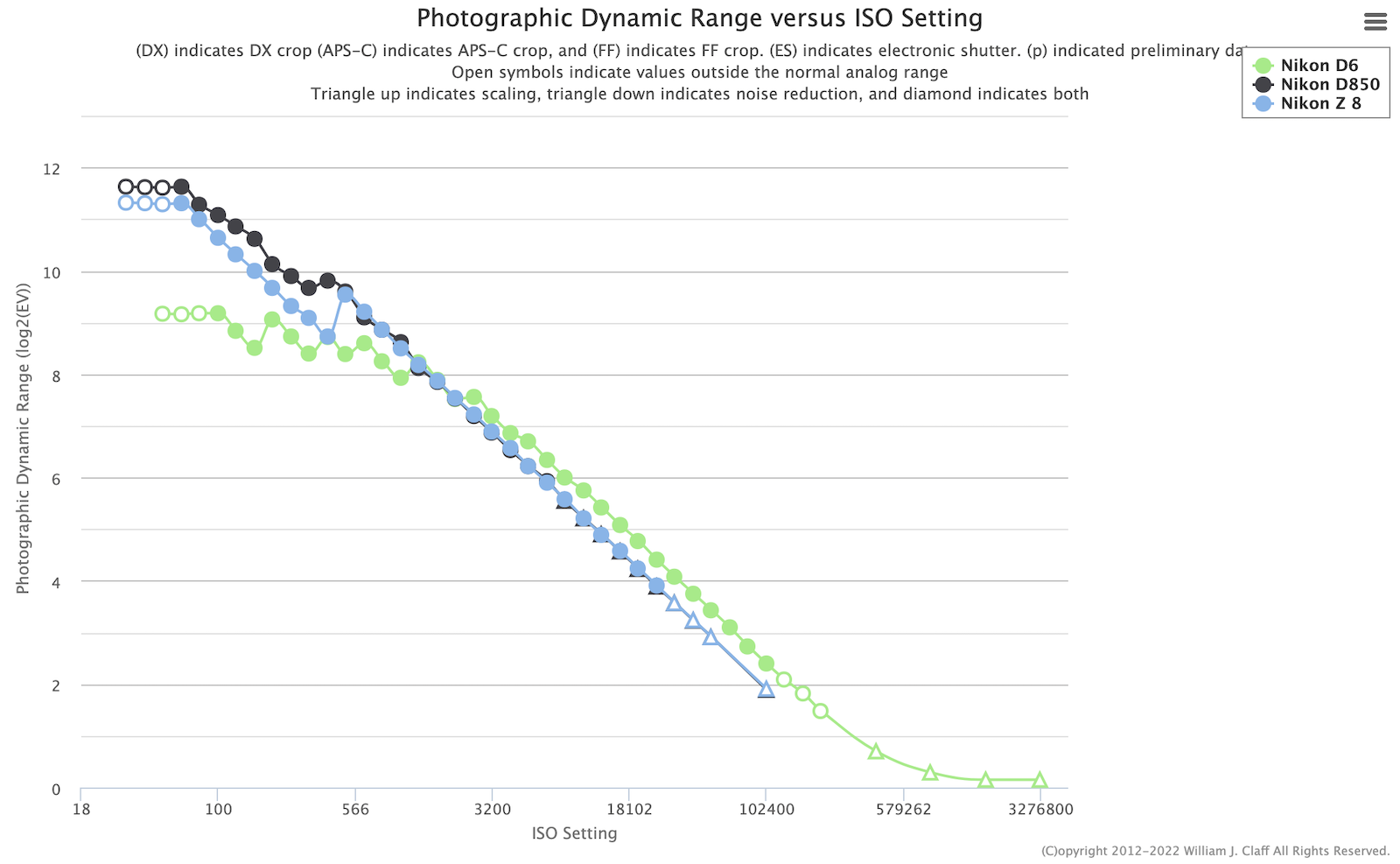 PhotonsToPhotos released their latest photographic dynamic range and other sensor measurements for the Nikon Z8 camera. As you can imagine, the Z8 and Z9 charts are identical:
