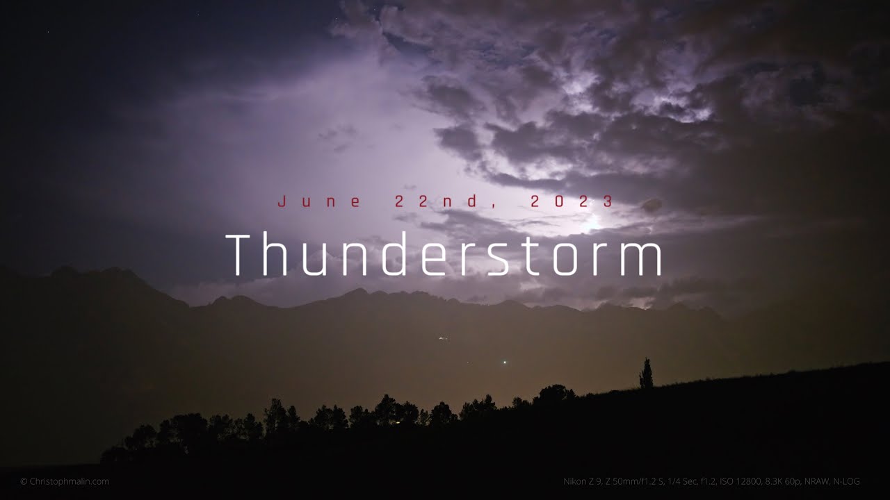 I set up both the Nikon Z 8 and Z 9 for 8.3K 60p NRAW N-Log with the Z 50mm f/1.2 S and Z 35mm f/1.8 S plus Z 70-200mm f/2.8 as an option. The Lightshow was intense. From a distance of about 85 km, I could see the thunderstorm moving over Southern Bavaria, backlit and illuminating the Nordkette Mountain Range: