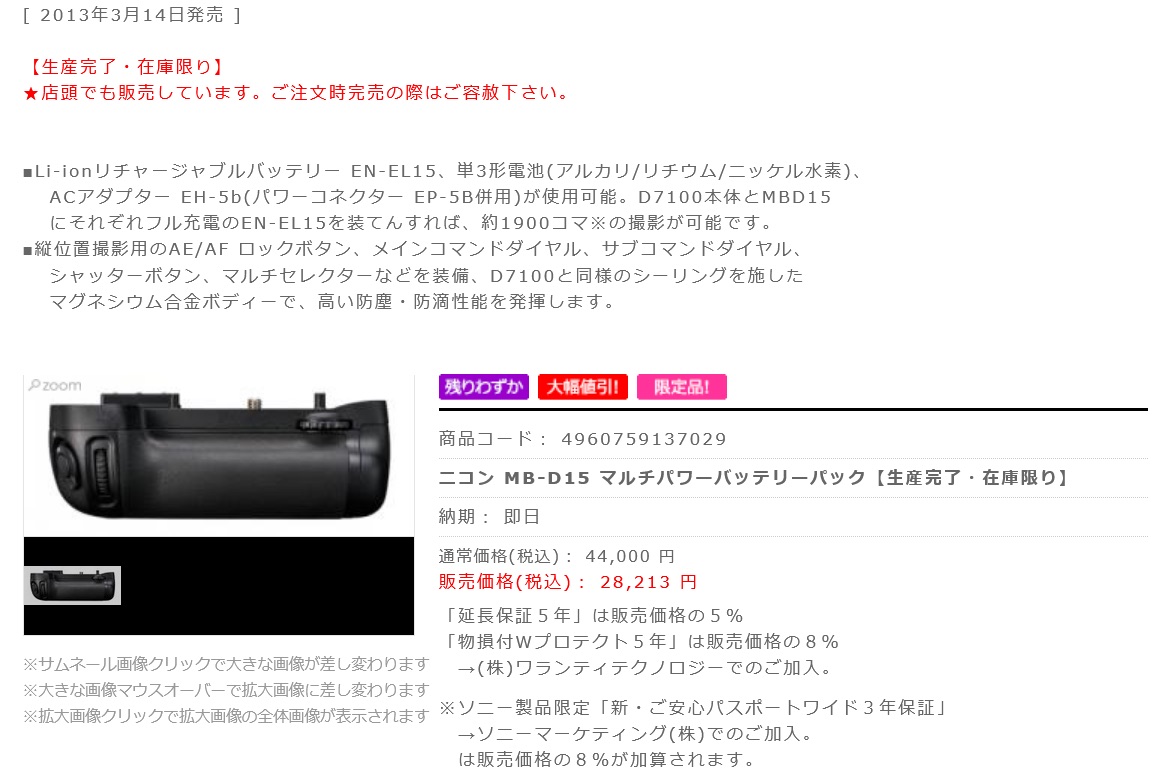 → Nikon MB-D15 multi-power battery pack listed as discontinued in Japan.