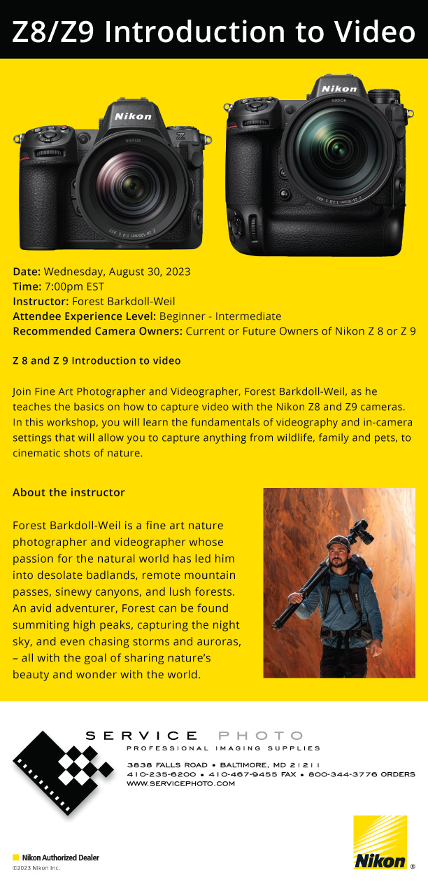 Service Photo will held a free Nikon Z8/Z9 “Intro to Video” online event on August 30th:
