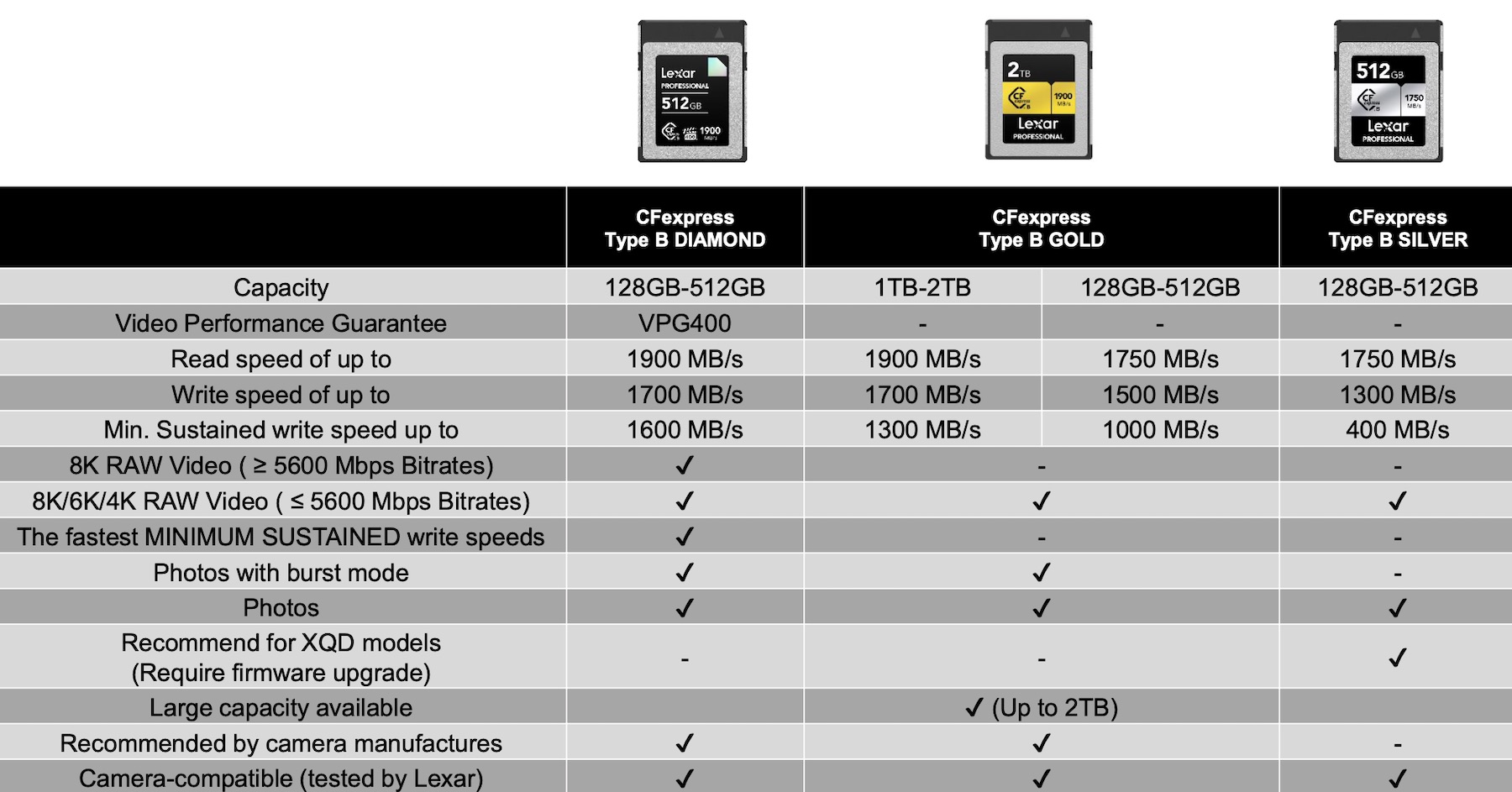 Lexar CFexpress memory cards comparison: