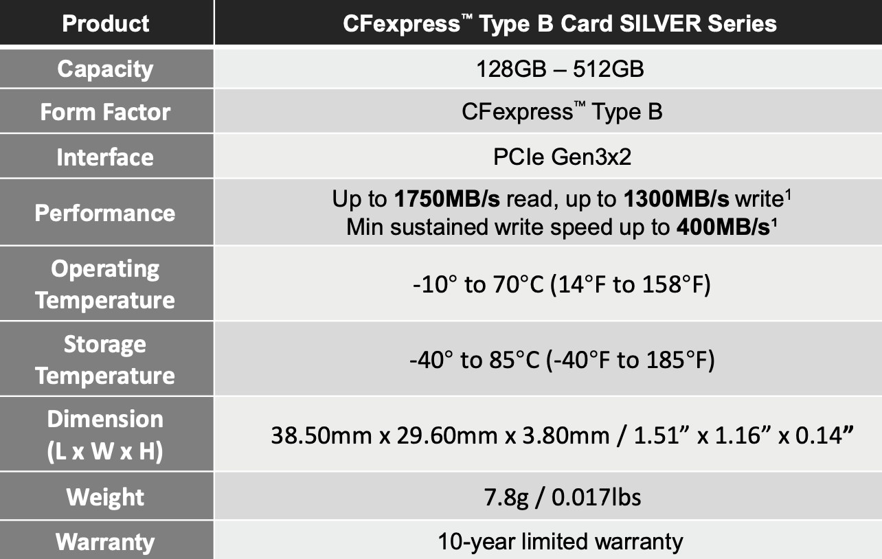 Here are some of the new Lexar SILVER PRO CFexpress memory card highlights: