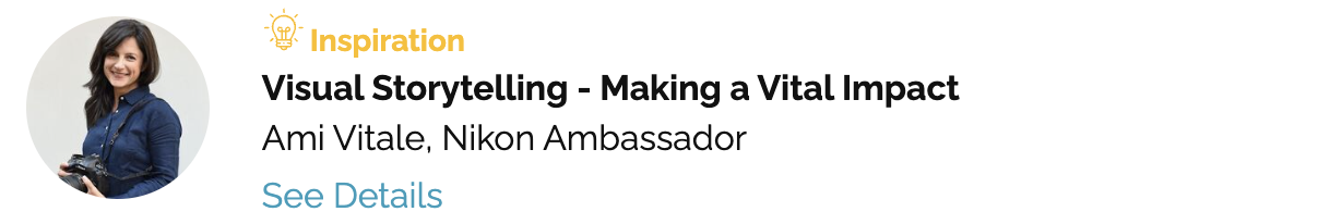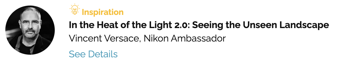 Many big names are on the schedule, including several Nikon ambassadors (Ami Vitale, D’Ann Boal, Deanne Fitzmaurice, Jerry Ghionis, Ron Magill, Brian Skerry, Vincent Versace) and two Nikon Photowalk leads: