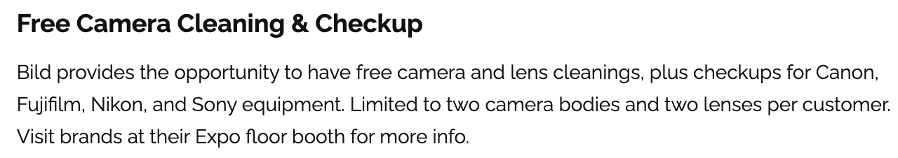 There will also be a free camera cleaning and checkup: