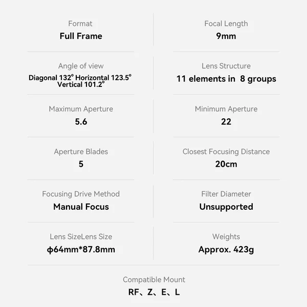 The Chinese company Brightin Star officially announced the previously reported 9mm f/5.6 full-frame lens for Nikon Z-mount (price: $479).