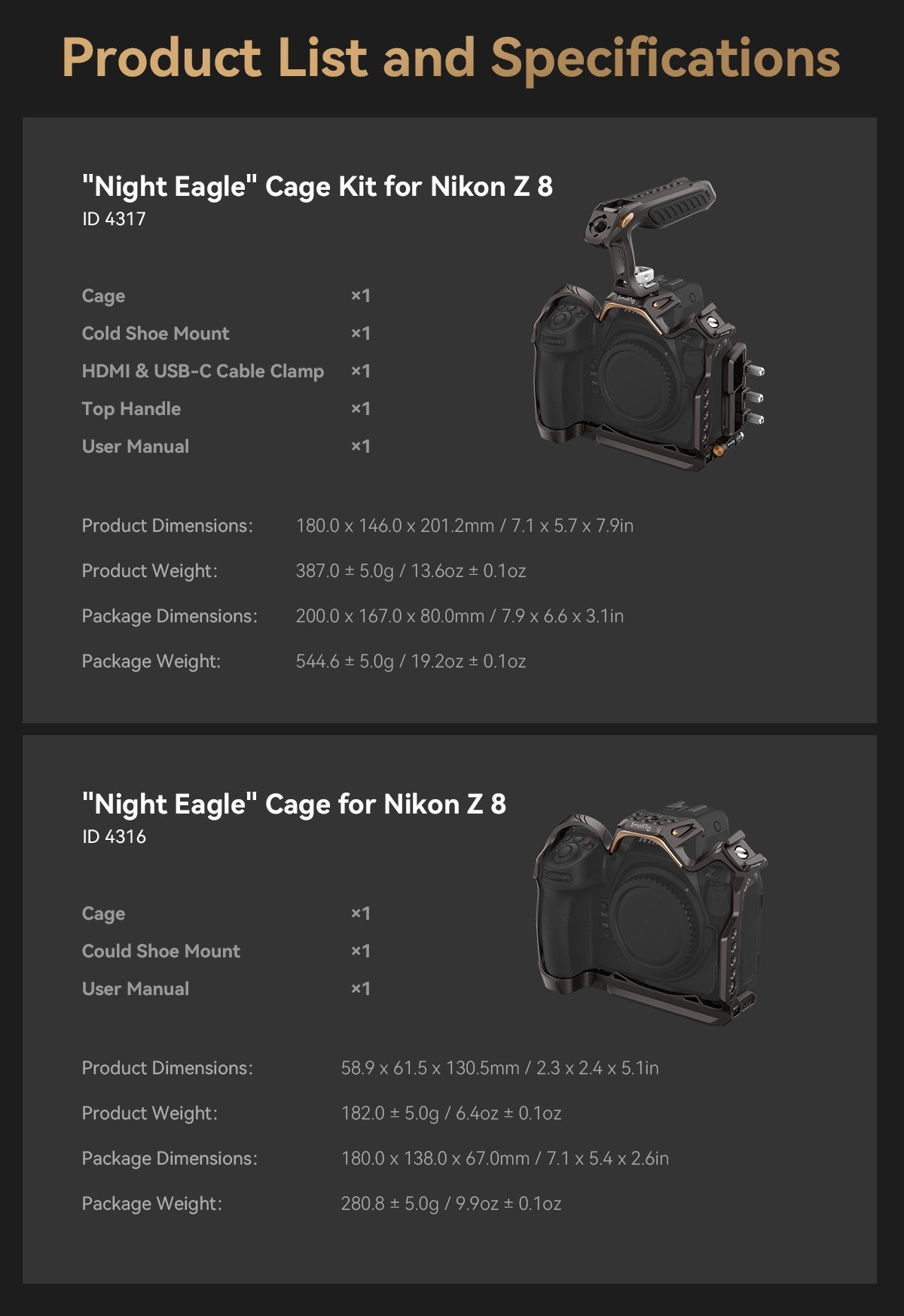 SmallRig released a new “Night Eagle” cage kit for Nikon Z8 cameras. For now, the new Z8 cage is sold only at the official SmallRig website (international shipping available). Two different versions are available: