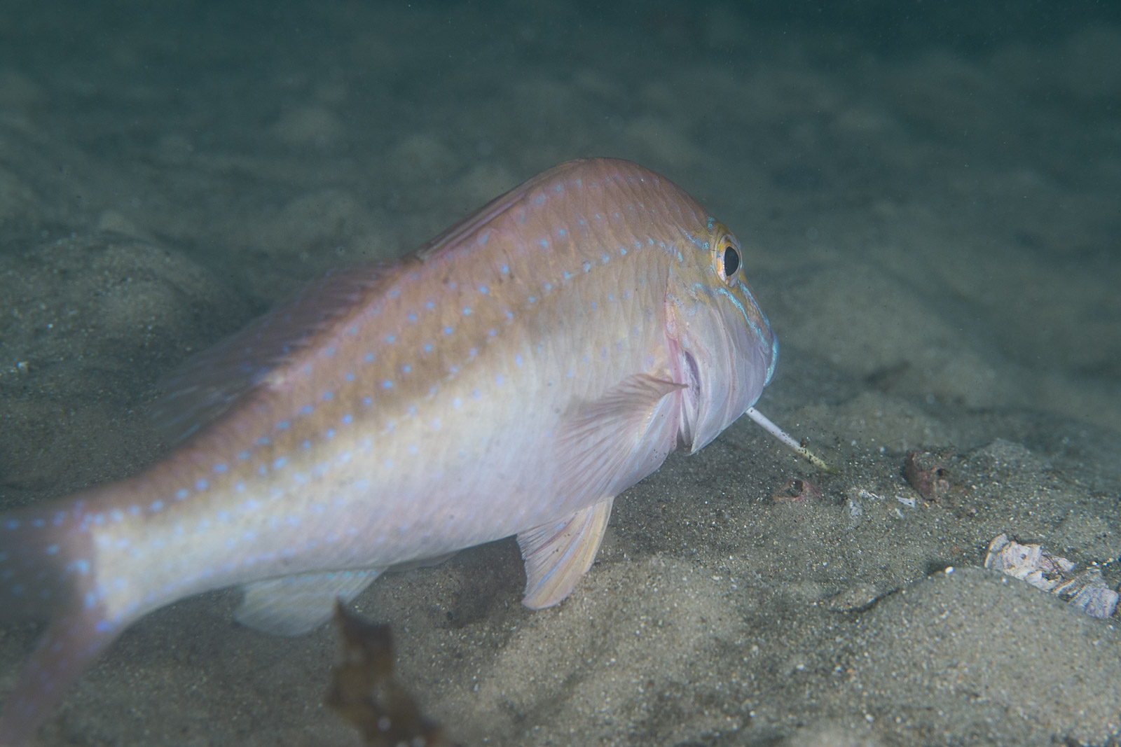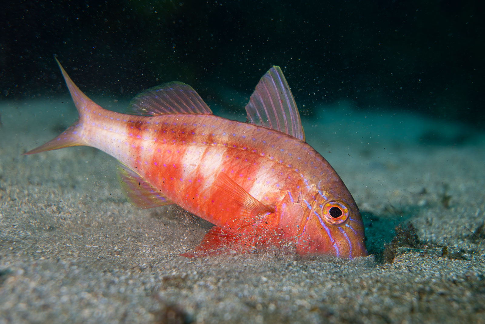 While the Z9 was frequently able to recognize goatfish and automatically focused on the eye, this rarely happened with the Z8 (Nikon Z8, Nauticam NA-Z8, Nikon Z 24–50mm f/4–6.3 at 50mm, dual Retra Flash Pro, f/6.3, 1/100s, ISO 100).