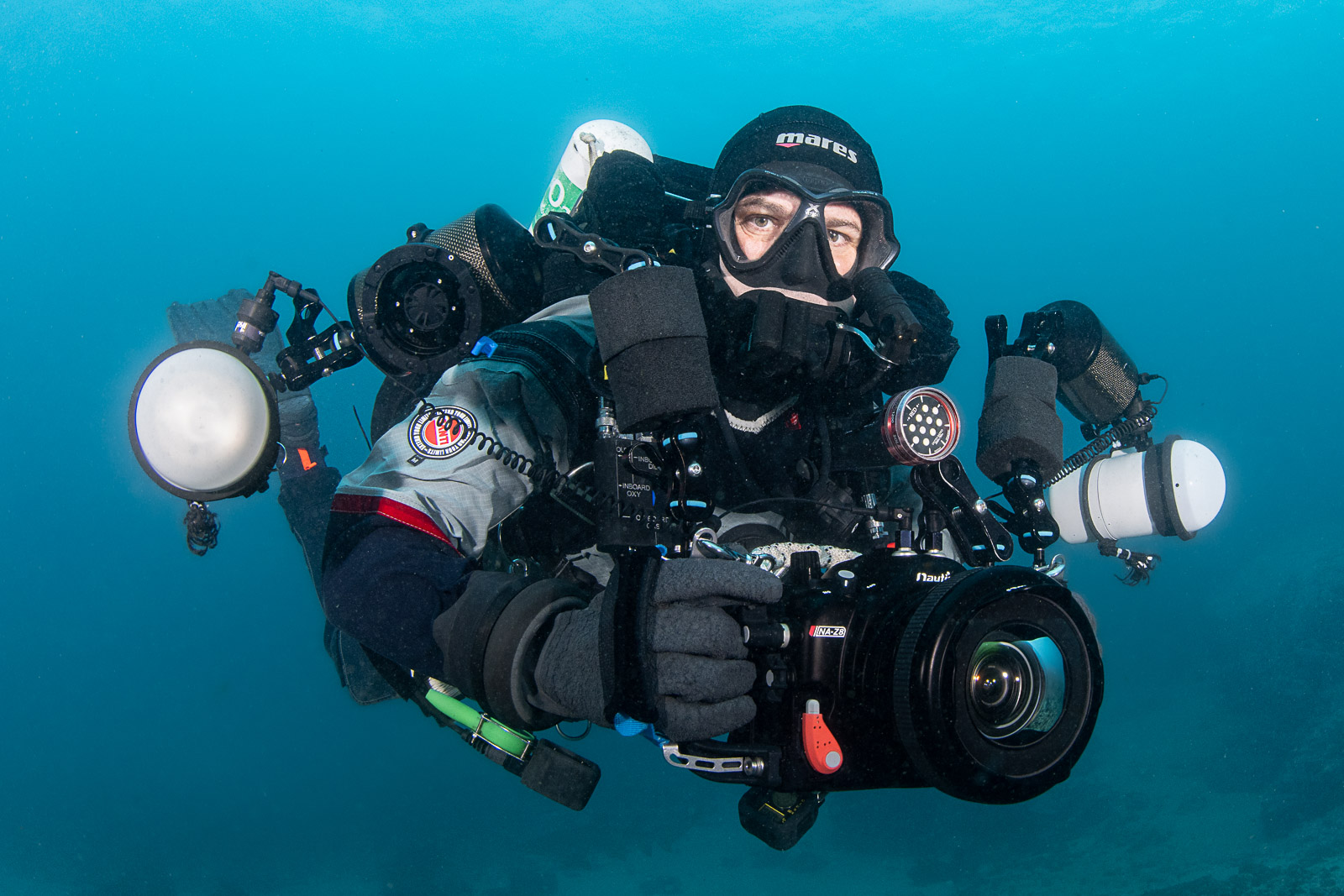 The author with the Nikon Z8 in a Nauticam NA-Z8 housing with the Nauticam WWL-C wide-angle conversion lens and two Ikelite DS230 strobes
