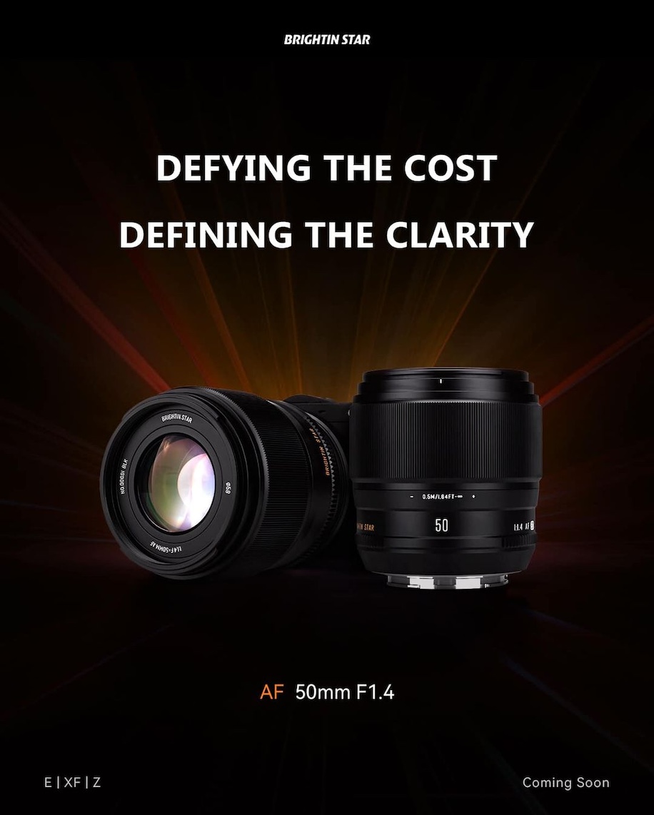 → Next week, on December 19th, Brightin Star will announce its first autofocus lens for Nikon Z-mount (previously reported here): the AF 50mm f/1.4 (APS-C).