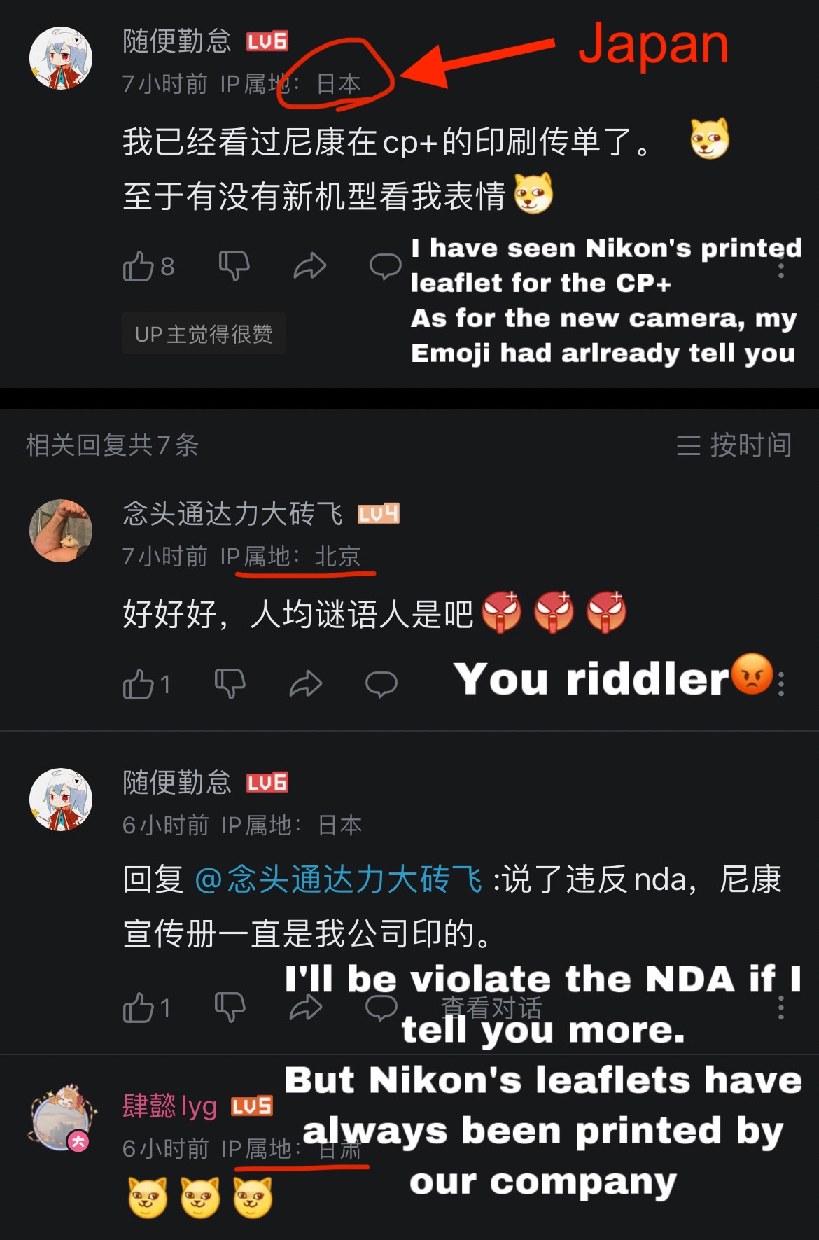 The Nikon brochures for the 2024 CP+ show have already been printed and there is a new camera according to this post on Chinese social media made by someone with an IP address from Japan (the Chinese government enforces all social media platforms to show the user’s IP address location to everyone):