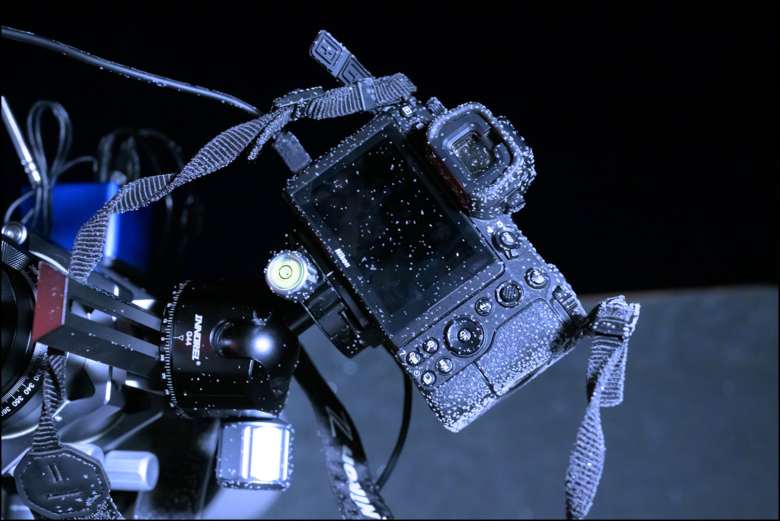 The real test nights were brutally cold by Belgian standards. It got down to -12 degrees Celsius, and humid. The telescope, tracking mount, cables, and camera body were all covered with ice when I went to check the results in the morning. I feel lucky I have everything running on autopilot, so I don’t have to spend the night next to the cameras. A dew heater prevented the lens from fogging, and the lens was the only thing that stayed ice free… Actually, the XQD card would not come out of the Z6 until I had it warm up inside the house.
