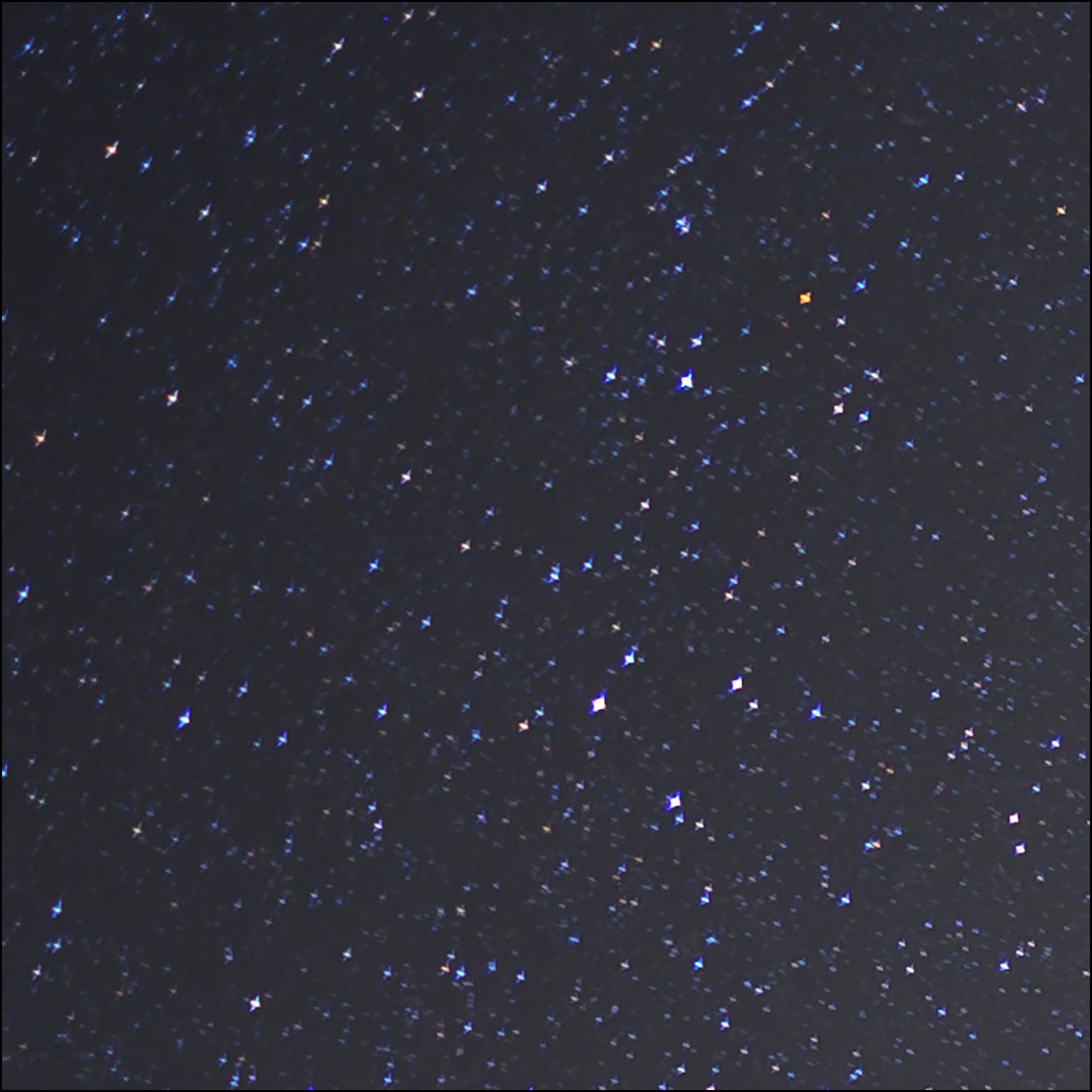 Before showing the processed results, here is a typical corner of the Plena wide open at f/1.8, cropped at full resolution. Notice how sharp and free of coma the stars are: