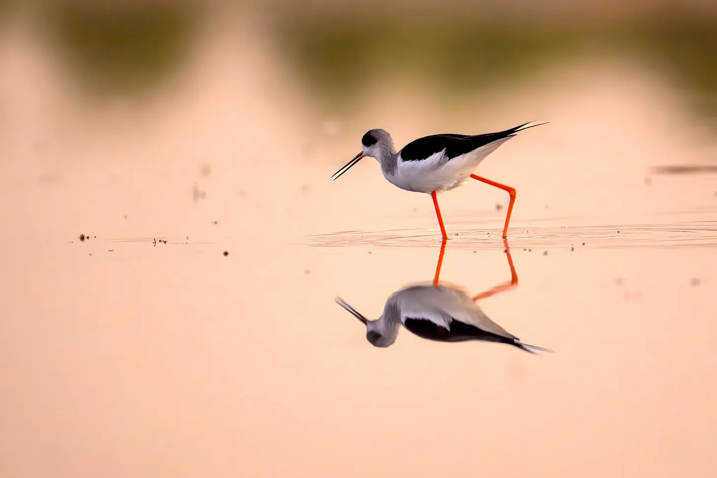 In the tranquil waters of Nalsarovar Bird Sanctuary, the Black-winged Stilt presents a vision of elegance with its contrasting black and white plumage against the soft pink hues of the wetland. It’s reflection on the glassy surface creates a tranquil symmetry, embodying the serenity of the sanctuary at dawn.