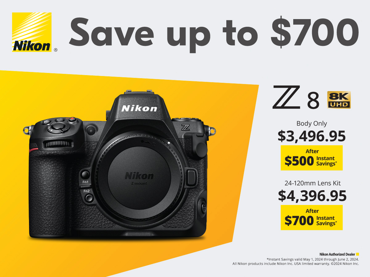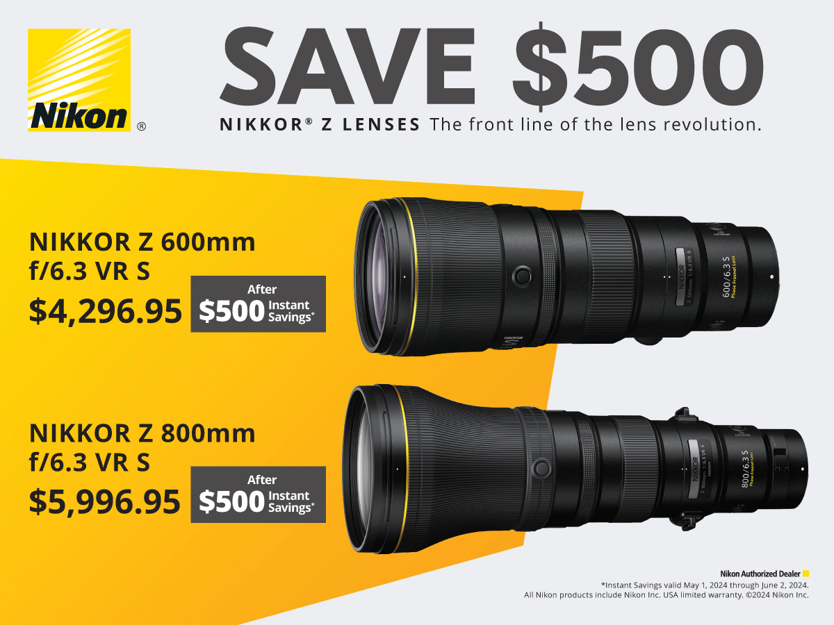 New Nikon savings coming on May 1st: the Nikon Z8, 600mm and 800mm will be all $500 off (up to $1,000 off other Z cameras))