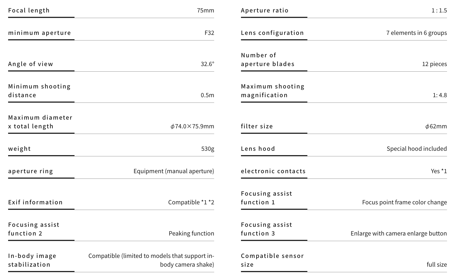 NOKTON 75mm F1.5 Aspherical is a large mouth manual focus medium telescope lens dedicated to Nikon Z mounts. Covers full-size image circles, optical design is optimized for the image sensors of Nikon Z System cameras. These lenses provide electronic connection, realizing electrical communication between the lens and the body. Due to the combination of electronic communication-supported body and the latest firmware, in addition to Exif information, in addition to body hand bleach correction (3 layers), it supports three types of pin adjustment support functions (pin adjustment due to focus point color change, pin adjustment due to peaking function, and pin adjustment due to enlarging buttons).