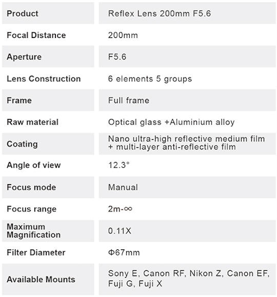 Now available: Kase 200mm f/5.6 MC full-frame manual focus reflex mirror lens for Nikon Z-mount
