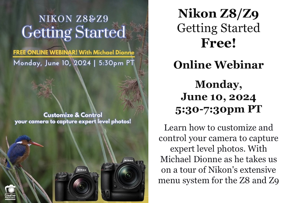 Nikon Z8+Z9 Setup to Stepup: Monday, June 10th, 5:30 pm FREE ONLINE.