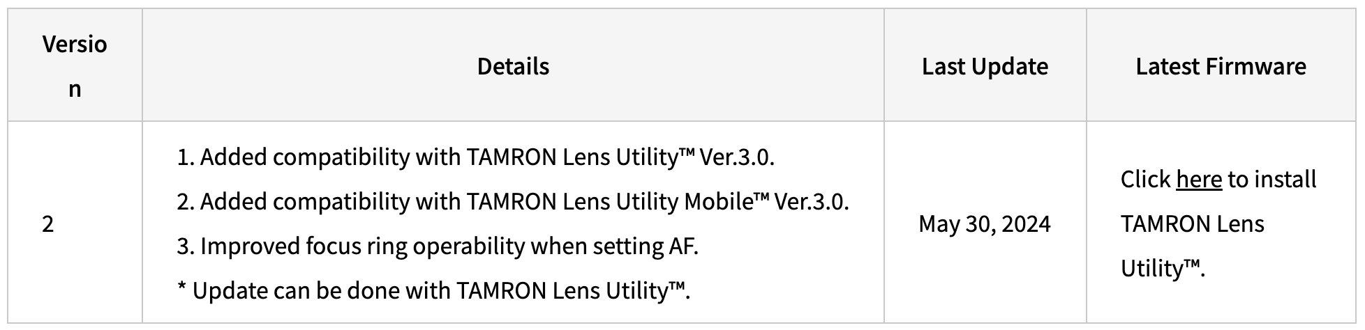 Tamron released a new firmware update for the 35-150mm f/2-2.8 Di III VXD lens for Nikon Z-mount: