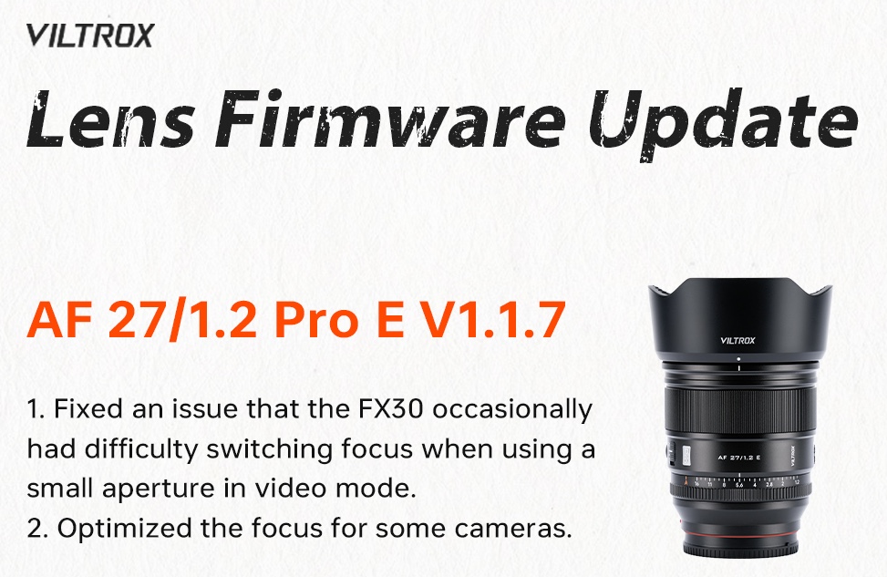 → Viltrox released new firmware updates to several Z-mount lenses.