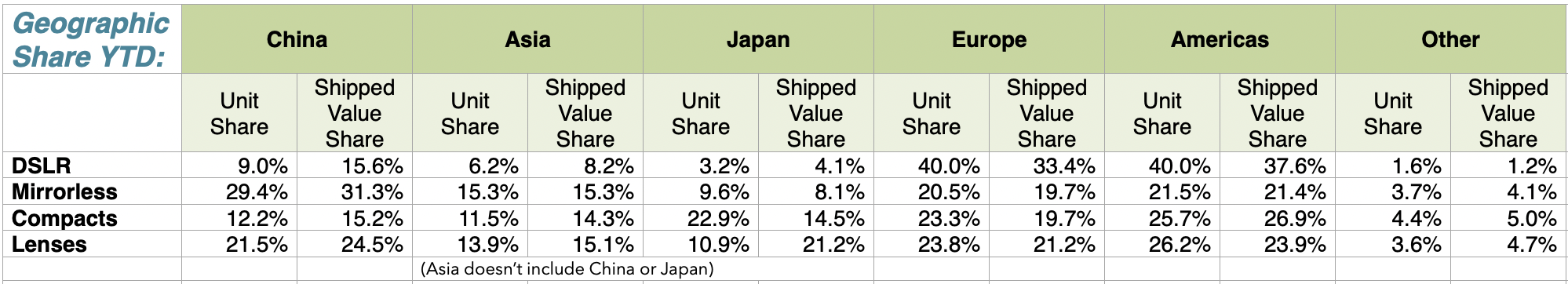 | Mirrorless Share YTD: | 2024 YTD % | 2023 YTD % | ||||||||||||
