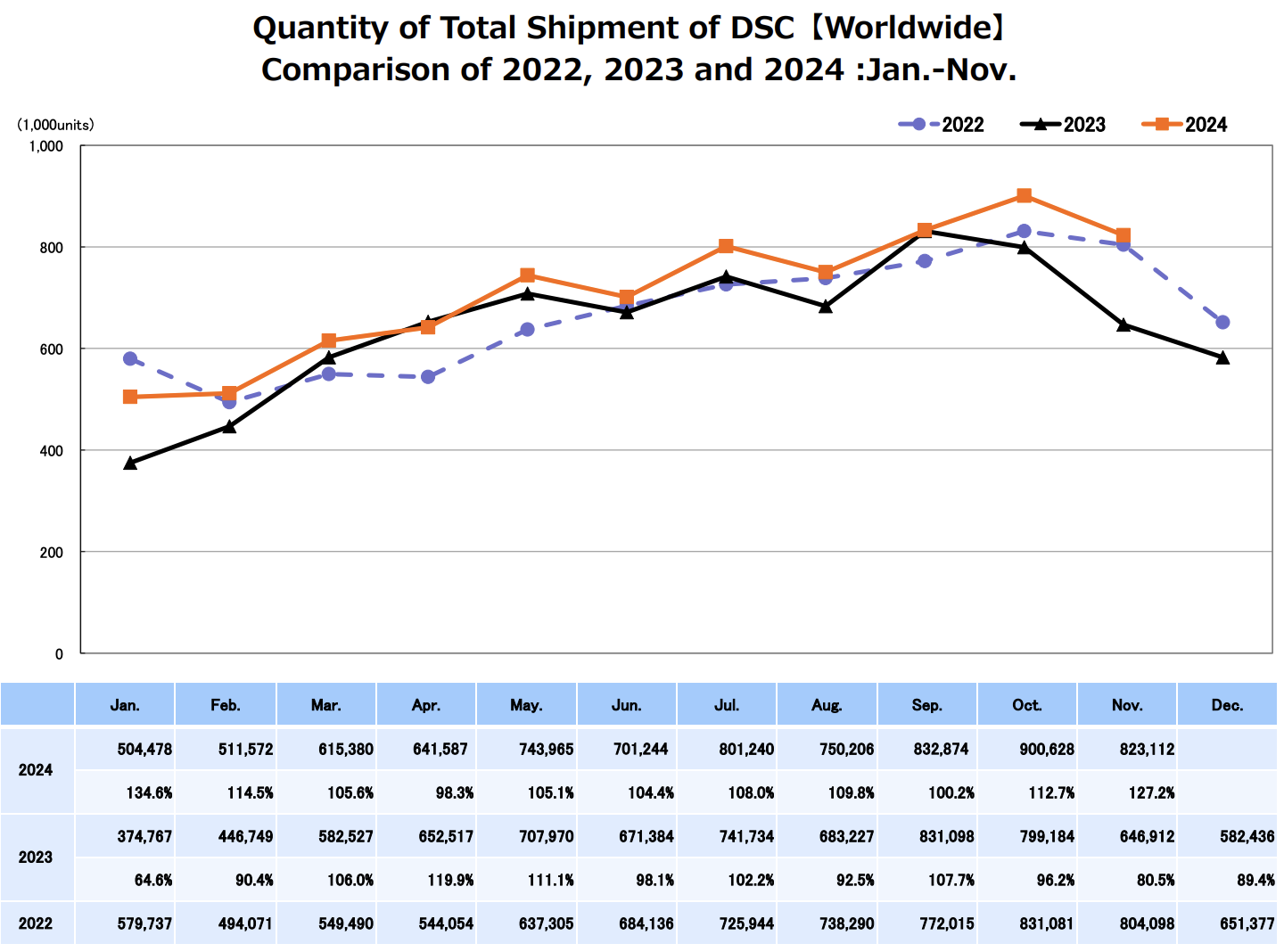 DSLR shipments up 18,000 units over October and up 20.1% over November 2023, but down 17% cumulatively for the year.