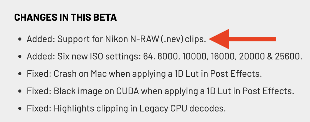 RED added Nikon RAW (N-RAW) support (now in beta) to their RedCine-X Pro professional-grade software application: