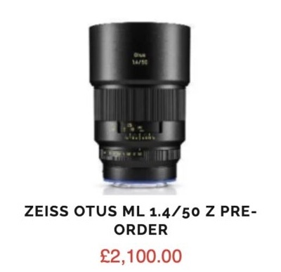 - Zeiss Otus ML 50mm f/1.4 for Z mount (£2,100)