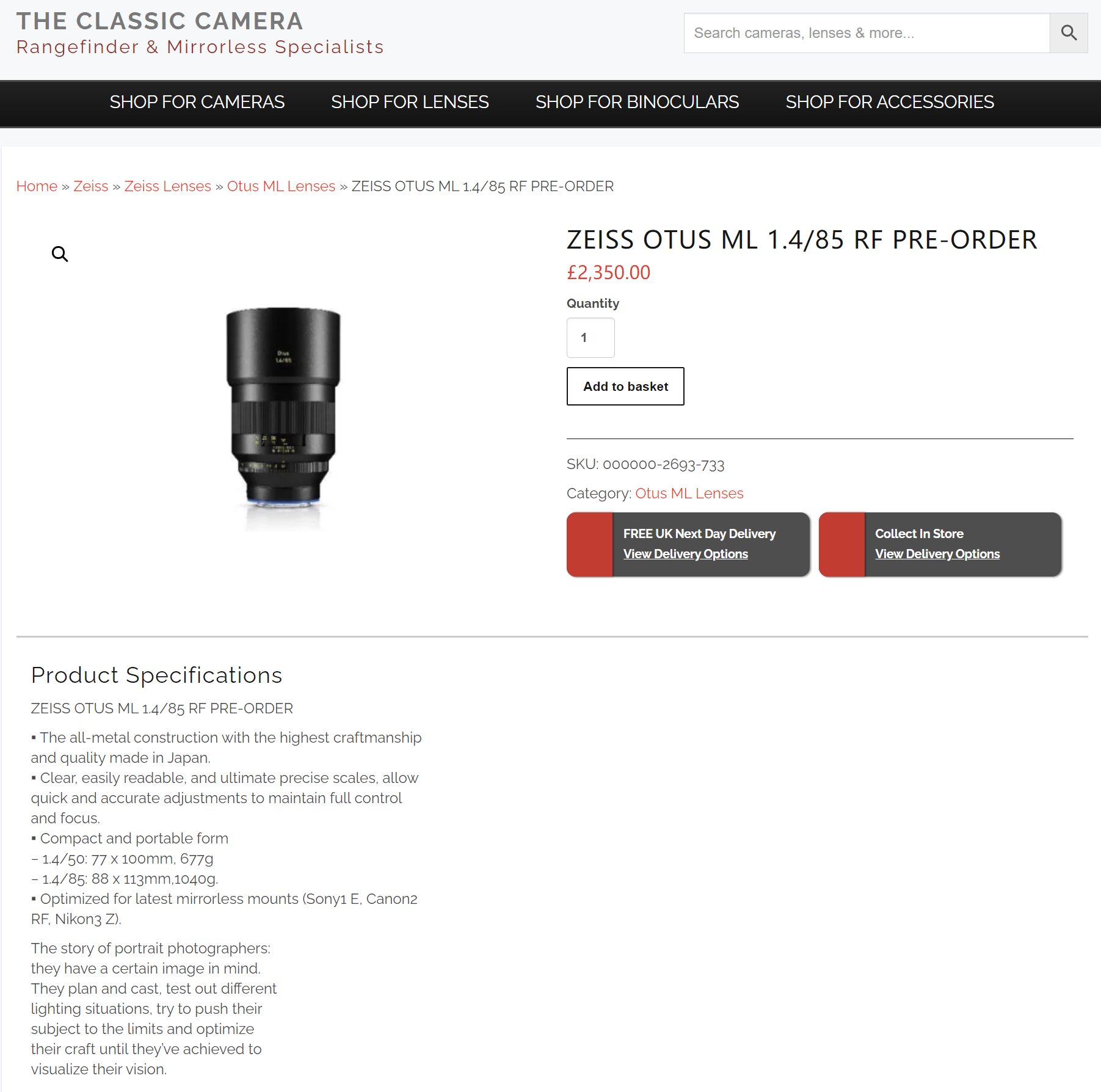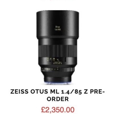 - Zeiss Otus ML 85mm f/1.4 for Z mount (£2,350)