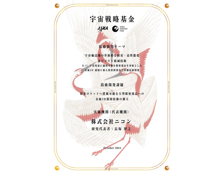 → Nikon was selected to implement the Space Strategy Fund at JAXA “Innovative Technology for Lightweight, High Performance, and Lower Cost Space Transportation Systems”