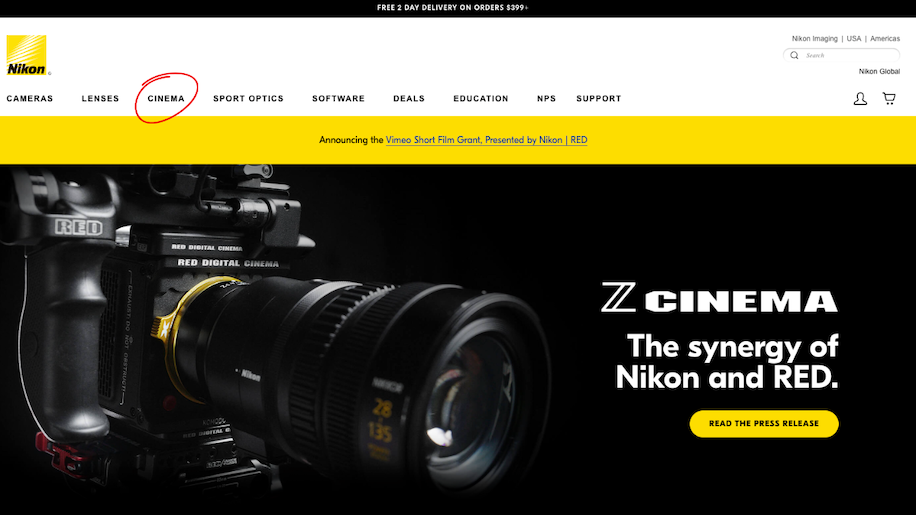 → Nikon USA now has a new Cinema tab on their website.