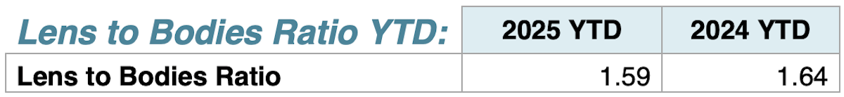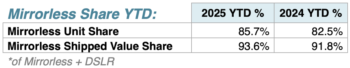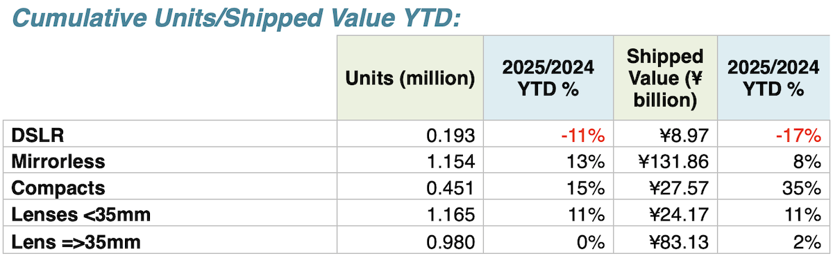For the first three months of 2025, DSLR’s are down 11% in units and 17% in shipped value, Mirrorless units are up 13% in units and 8% in shipped value, Compacts are up 15% in units and 35% in shipped value, lenses for smaller than 35mm sensors are up 11% in units andshipped value, and lenses for 35mm and larger sensors are flat in units and up 2% in shipped value.