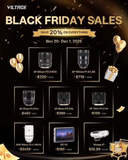 The new Viltrox Black Friday deals started today – they are offering 20% off on everything they sell: