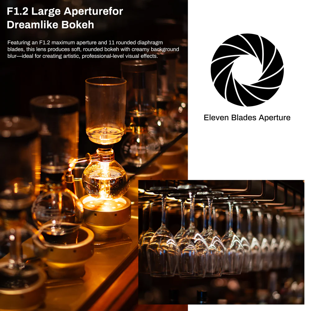 - Professional bokeh: the large F1.2 maximum aperture with 11 rounded aperture blades creates exceptionally smooth, circular bokeh with creamy background separation—perfect for portraits and artistic storytelling