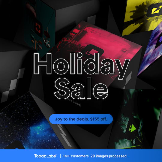 If you missed Black Friday, Topaz Labs just started a new Holiday Sale that includes Topaz Studio, Studio Pro, and all single apps (valid from December 16th to January 7th). Here are the details: