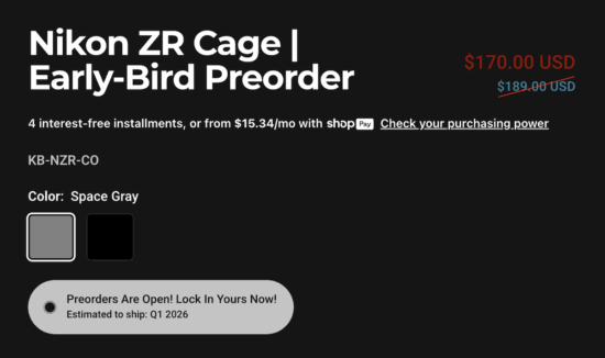 Kondor Blue launched a new Nikon ZR cage (available in two colors), and early-bird pre-orders are now open at a discounted price ($19 off):